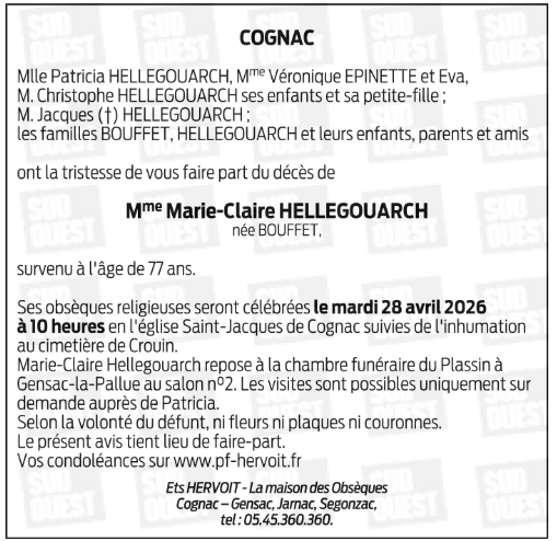 Cimetière de CROUIN - ( COGNAC ) le mardi 28 avril à 11 heures