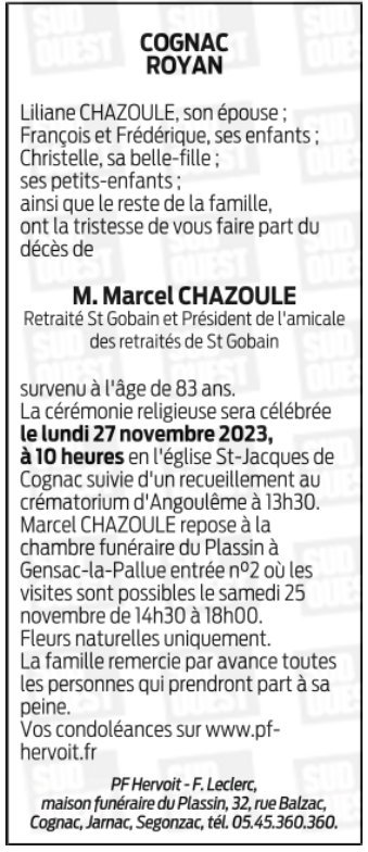 Monsieur Marcel CHAZOULE
