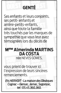 Madame Almerinda MARTINS DA COSTA née NEVES GOMES