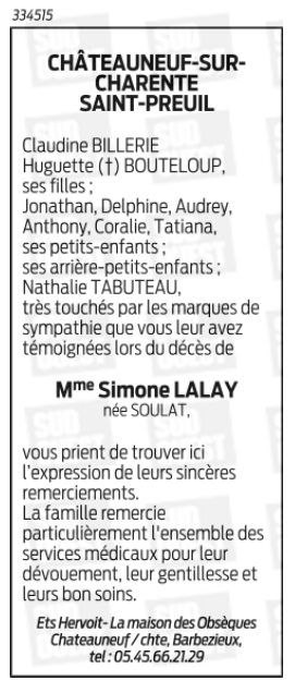 Madame Simone LALAY née SOULAT