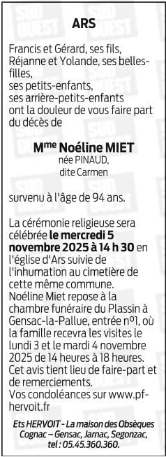 Veuve de Maxime MIET