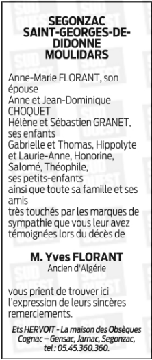 Annonce de remerciement