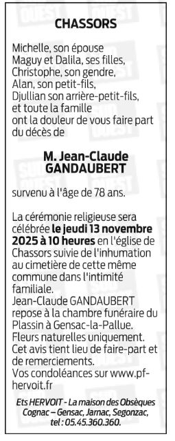 Décédé à Châteaubernard (16100, France) le samedi 8 novembre 2025 à l'âge de 78 ans