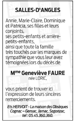 Madame Geneviève FAURE née LORIC