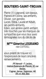 Madame Ginette LEGRAND née COITEAU