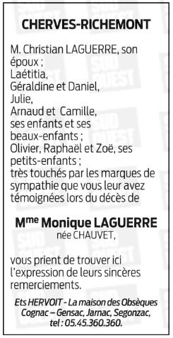 Madame Monique LAGUERRE née CHAUVET