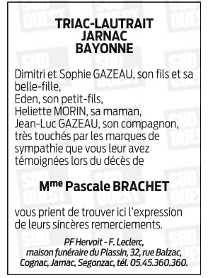 Décédée à Châteauneuf-sur-Charente (16120, France) le vendredi 21 avril 2023 à l'âge de 62 ans