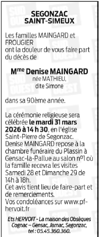 Veuve de Monsieur Michel MAINGARD