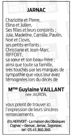 Madame Guylaine VAILLANT née JAURON