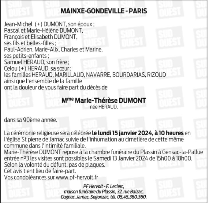 Madame Marie-Thérèse DUMONT née HERAUD