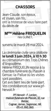 Epouse de Monsieur Jean-Claude FREQUELIN