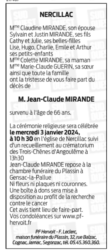 Annonce nécrologique