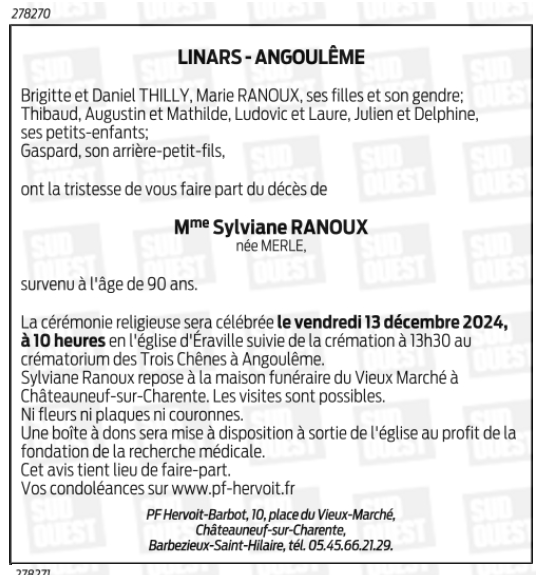 Veuve de Monsieur René RANOUX
