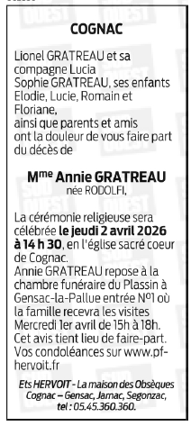 Madame Annie GRATREAU née RODOLFI