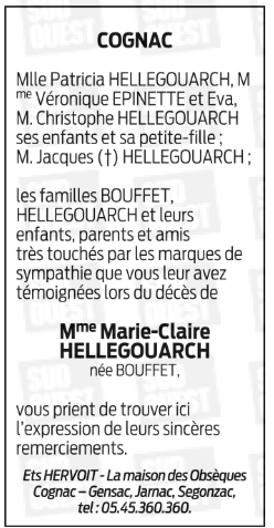 Madame Marie-Claire HELLEGOUARCH née BOUFFET