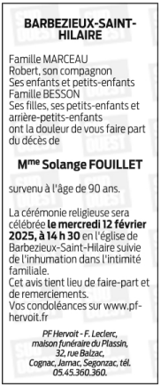 Décédée à Barbezieux-Saint-Hilaire