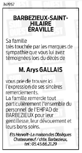 Annonce de remerciement