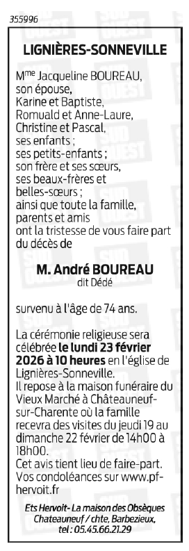 Décédé à Criteuil-la-Magdeleine (16300, France) le mardi 17 février 2026 à l'âge de 74 ans