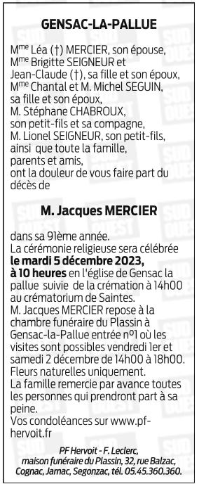 Décédé à Châteaubernard (16100, France) le mercredi 29 novembre 2023 à l'âge de 90 ans