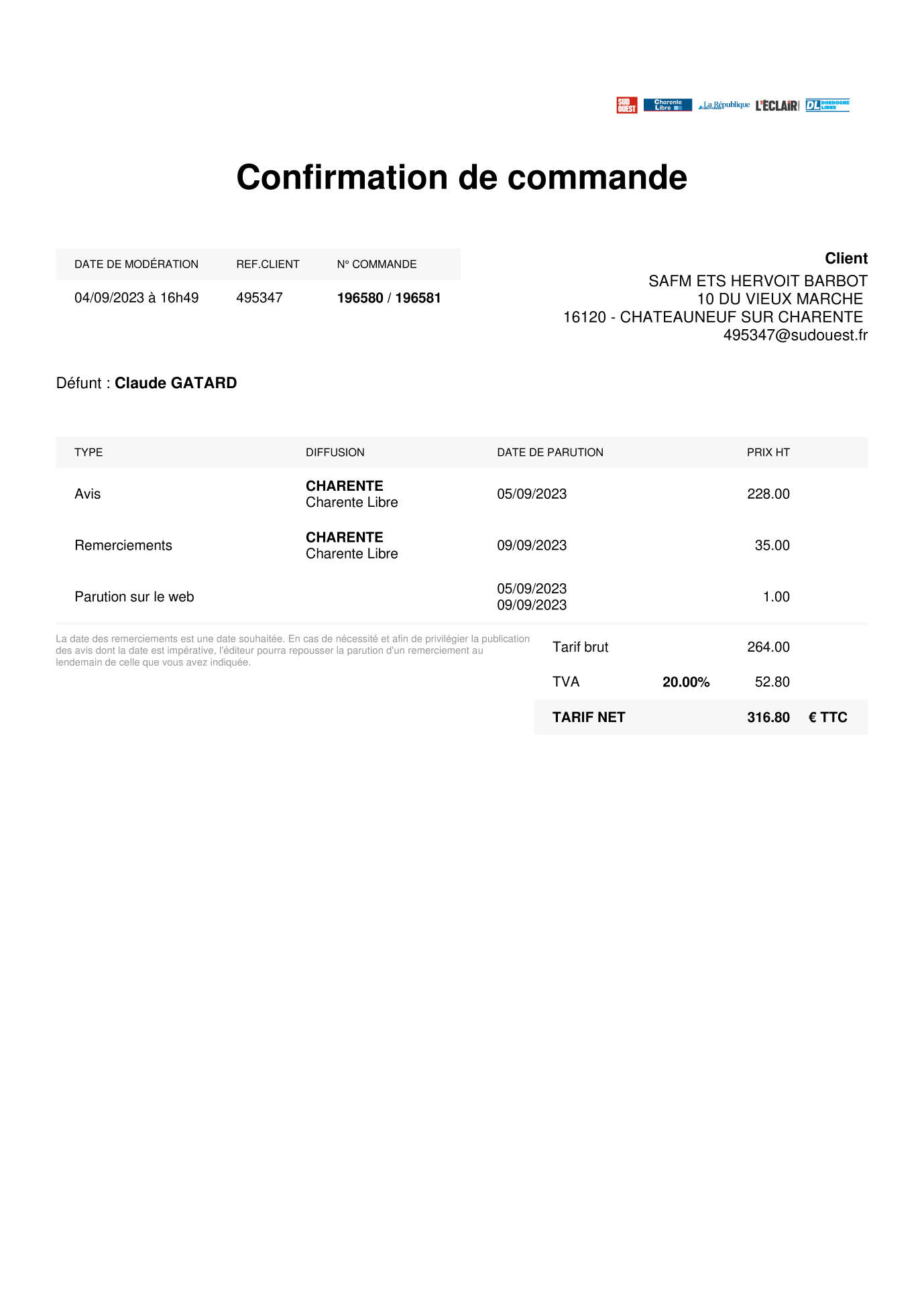 Décédé à Berneuil (16480, France) le samedi 2 septembre 2023 à l'âge de 90 ans