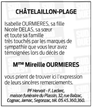 Epouse de Monsieur Christian OURMIERES