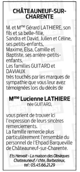 Madame Lucienne LATHIERE née GUITARD