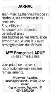 Veuve de Monsieur Jean-Claude LARUE