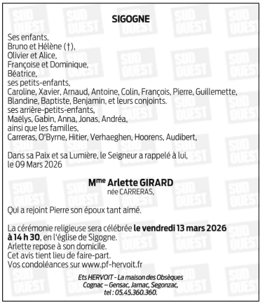 Madame Arlette GIRARD née CARRERAS