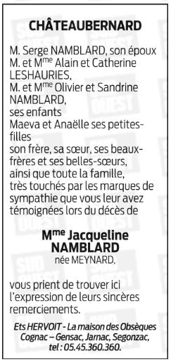 Madame Jacqueline NAMBLARD née MEYNARD