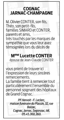 Veuve de Monsieur Jean-Claude CONTER