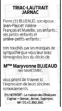 Madame Maryvonne BUJEAUD née MARCOMBE