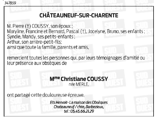 Madame Christiane COUSSY née MERLE