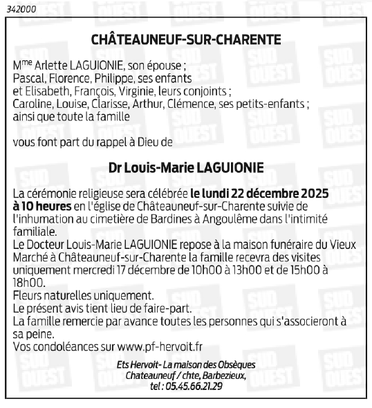 Décédé à Châteauneuf-sur-Charente (16120, France) le mardi 9 décembre 2025 à l'âge de 98 ans