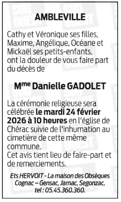 Veuve de Monsieur Marcel GADOLET