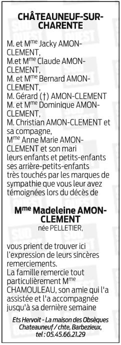 Madame Madeleine AMON-CLEMENT née PELLETIER