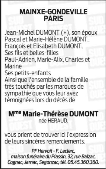 Madame Marie-Thérèse DUMONT née HERAUD